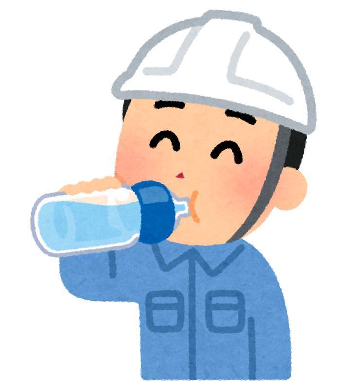 夏場は特に熱中症予防として、午前・午後の休憩時間以外でもこまめに水分と塩分補給、涼しい場所での体温調整をしています。